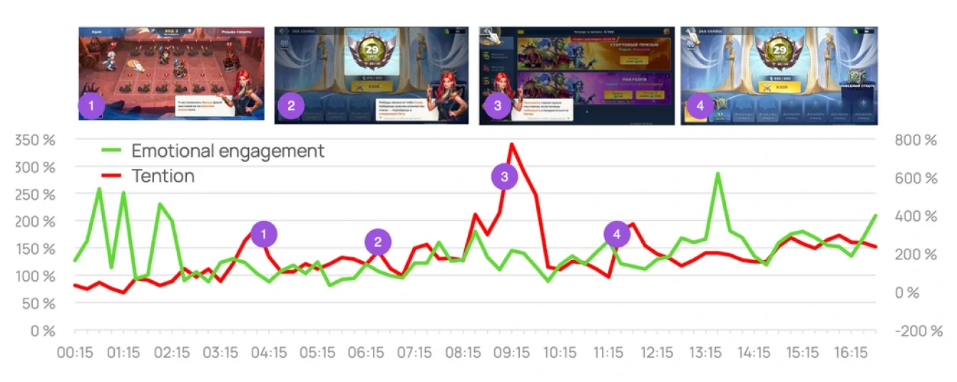 Scenes presenting new heroes and their abilities contribute to user tension.